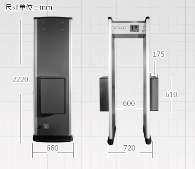 區(qū)別于傳統(tǒng)金屬探測門的探測技術原理。實現(xiàn)對警用服裝配飾的銅鐵紐扣、警號標牌等不探測告警